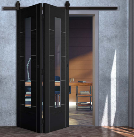 Give your room a sleek, modern upgrade with the Accordion Laminate Vancouver Black Door. Its deep black laminate finish and smooth folding motion make it a stylish and practical choice for tight or contemporary spaces. Designed for easy operation and a clean, minimalist look, it fits beautifully into modern interiors.