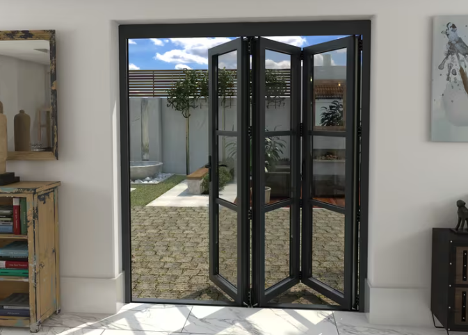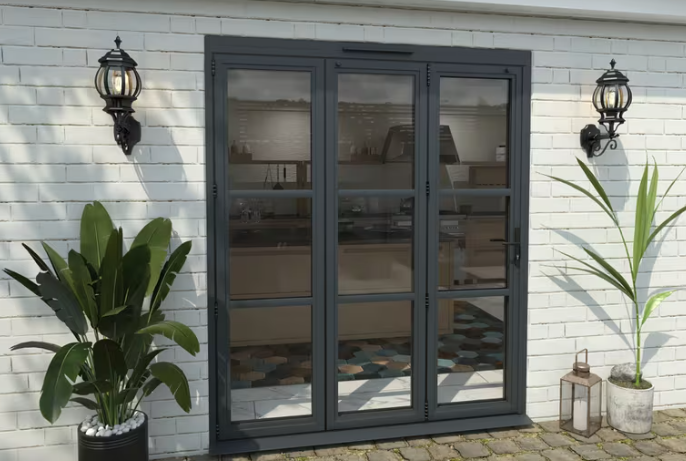 The AK287482 Grey Heritage Aluminium Bifold Door offers a modern anthracite look with strong thermally broken aluminium frames and energy-efficient glazing. Designed to meet Part L standards, it includes a secure multipoint locking system and color-matched hardware for a seamless finish. Pre-adjusted and simple to fit, this 3-panel set is ideal for fast, reliable installation.